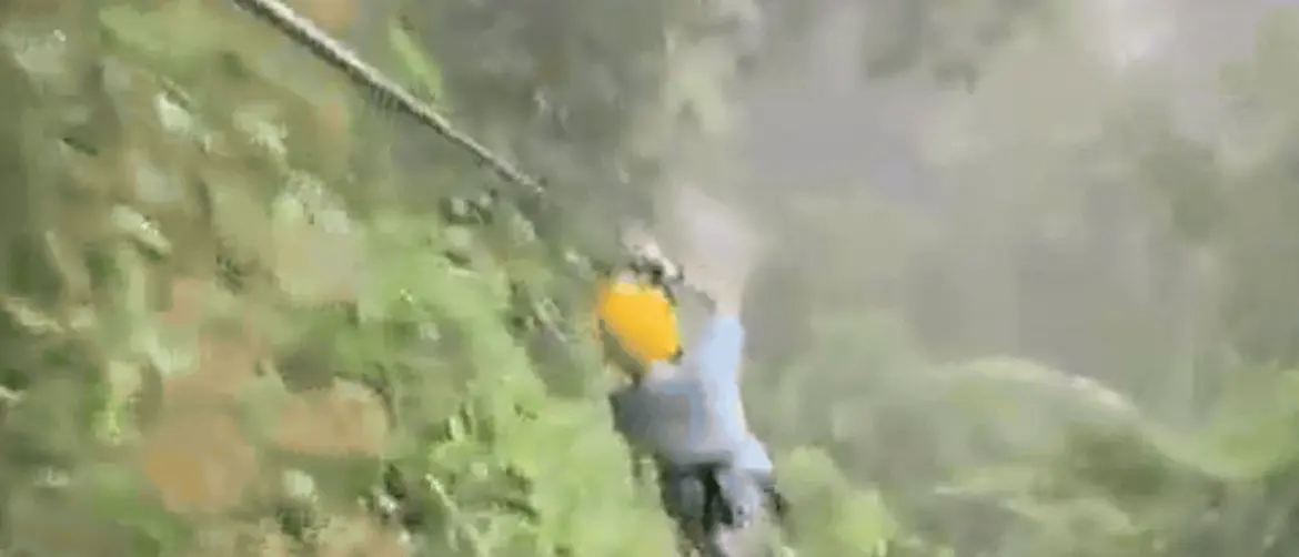 Tako da se može reći da je najzabavniji dio upravo to spuštanje bez prestanka, no u ovoj je situaciji neočekivani posjetitelj prekinuo zabavu. Video je postao viralan na društvenim mrežama, prikazuje dječaka i muškarca kako uzbuđeno započinju vožnju ziplineom kroz guste krošnje.